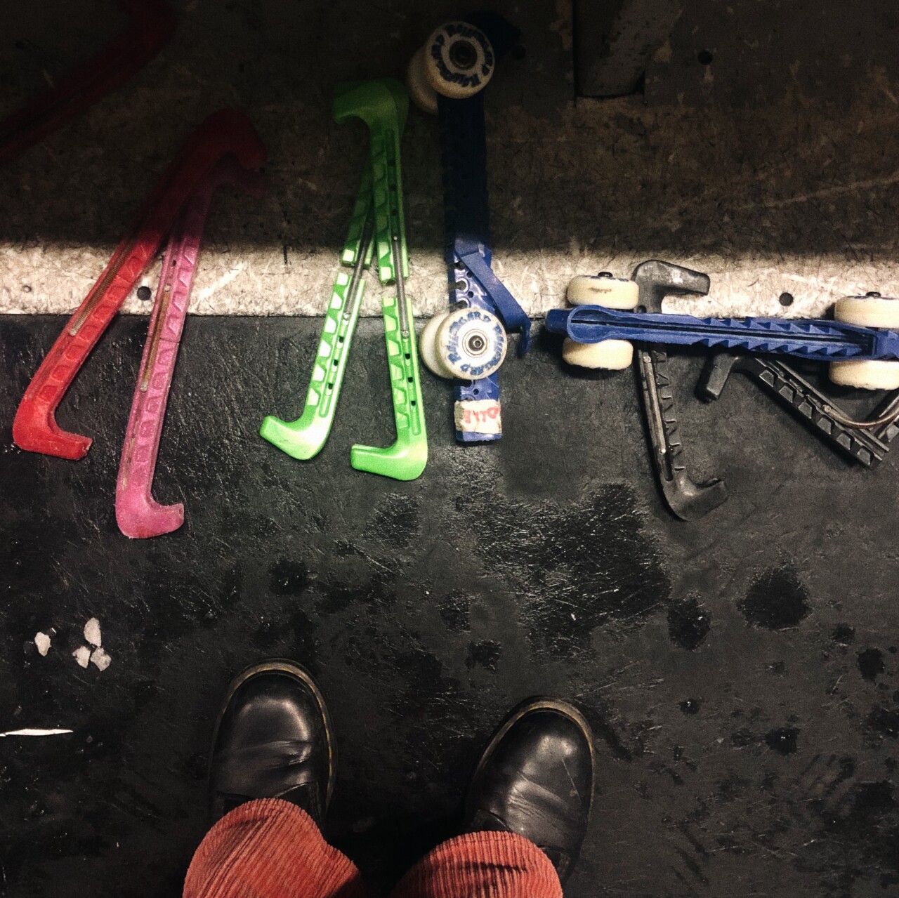 Vissa av barnen hade hjul på sina hockeyskydd. Genialt.