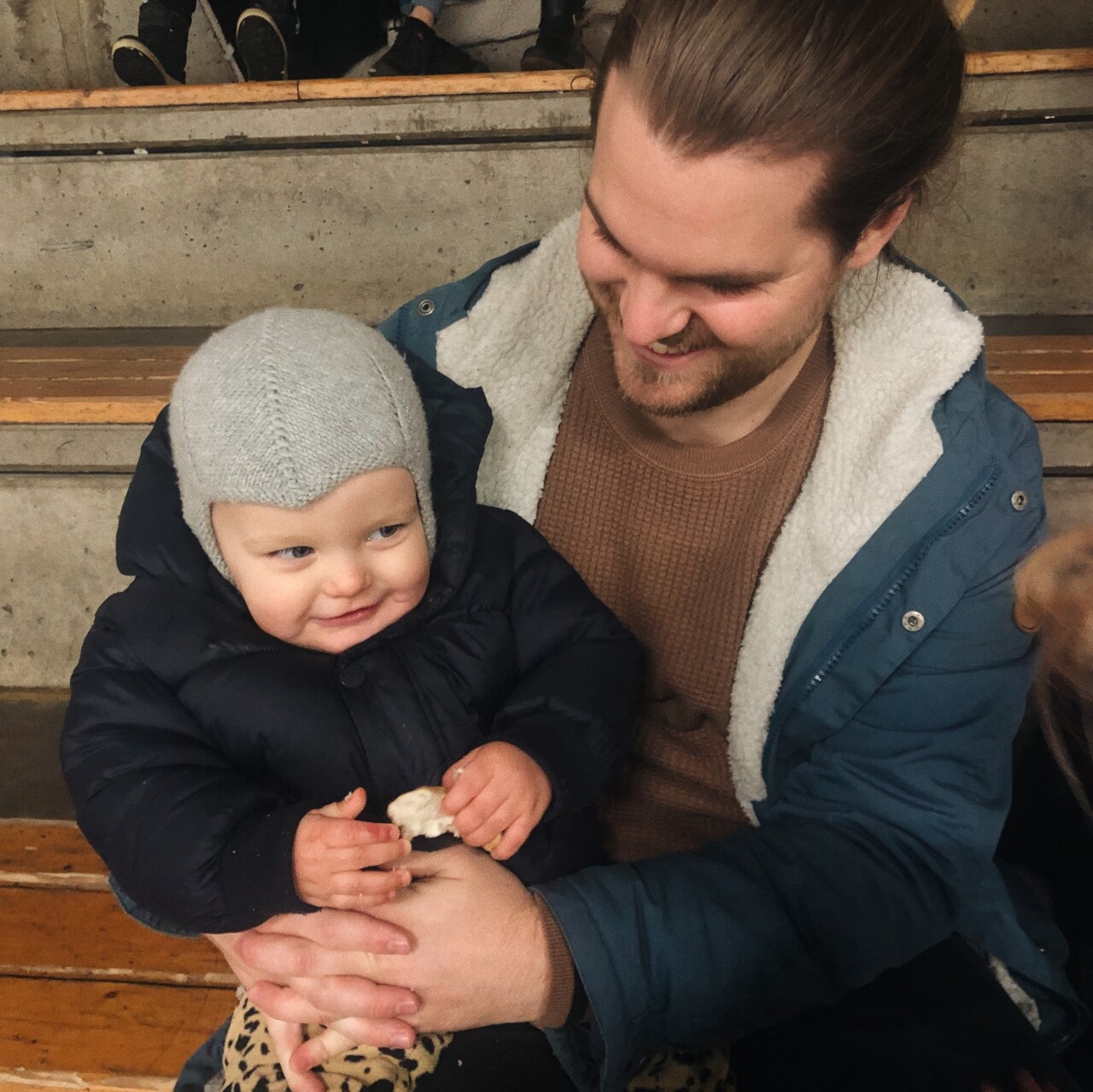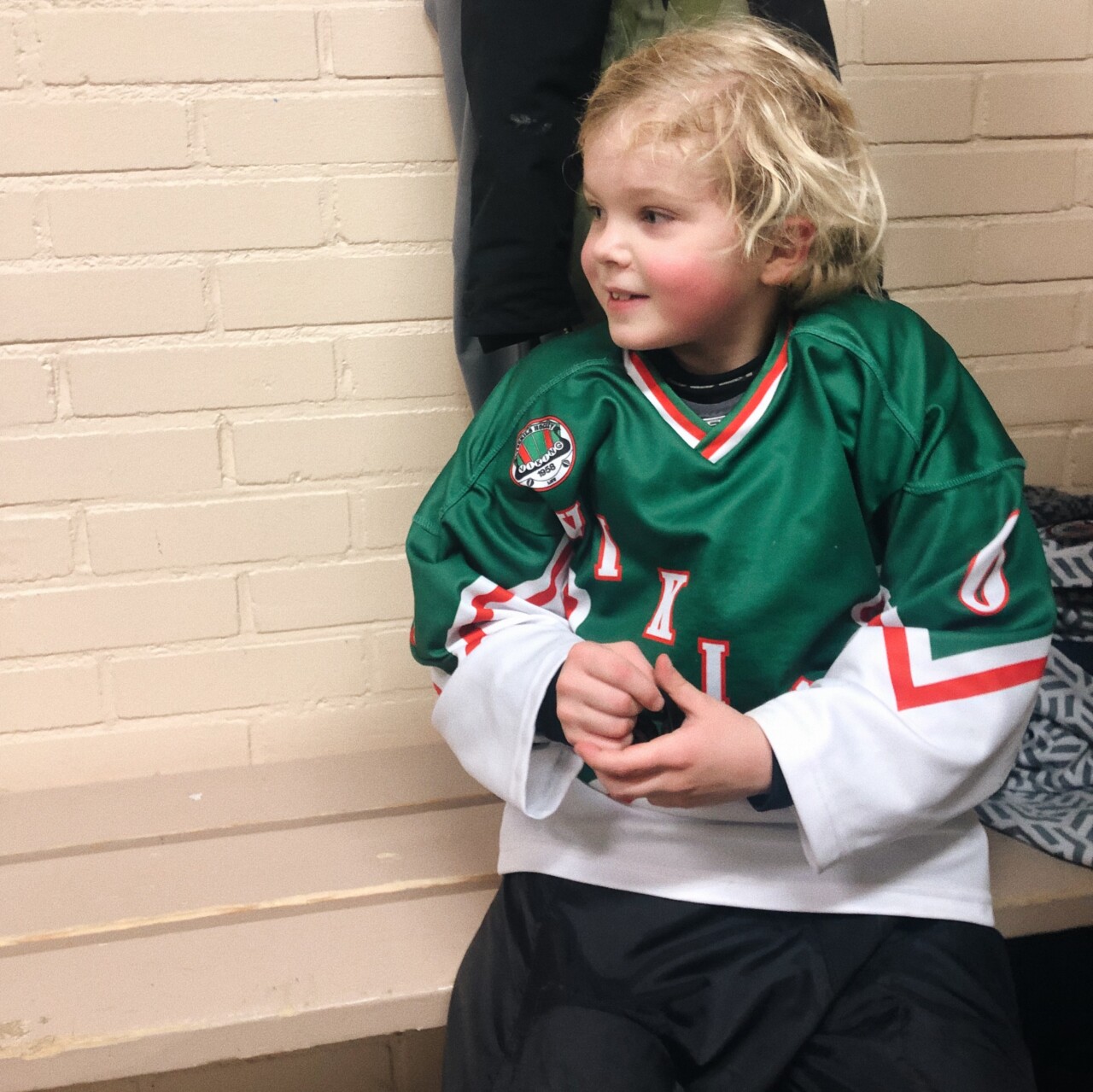 Det luktade så mycket svett i omklädningsrummet. Var som en vägg. Och i ishallen burrade vi ihop oss under filtar. Valentin, Viggos yngsta, tyckte att det hela var väldigt spännande.