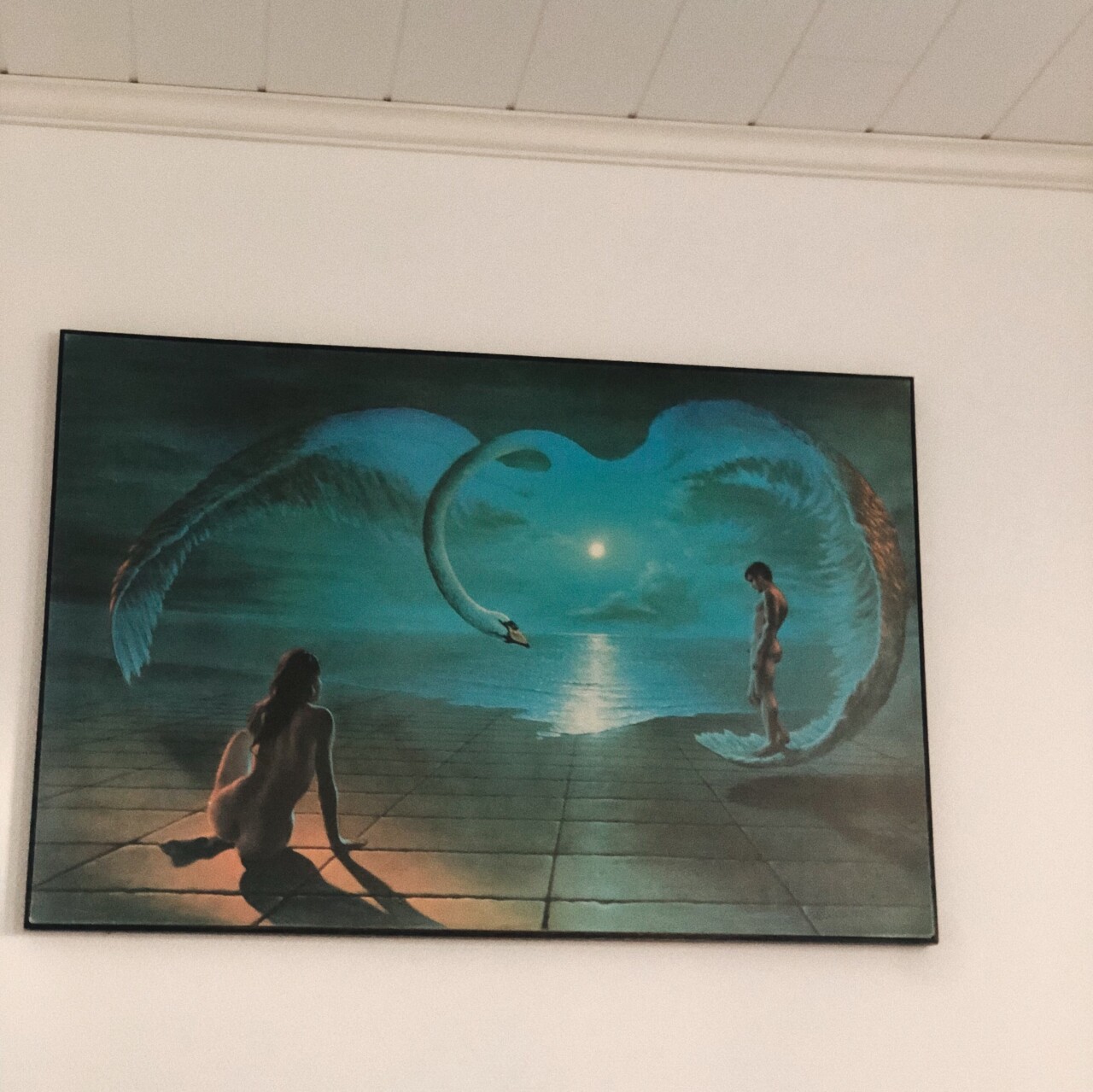 Och ungefär tio bilder på den här tavlan som hängde över sängen. Är det där du och Johan? frågade han.