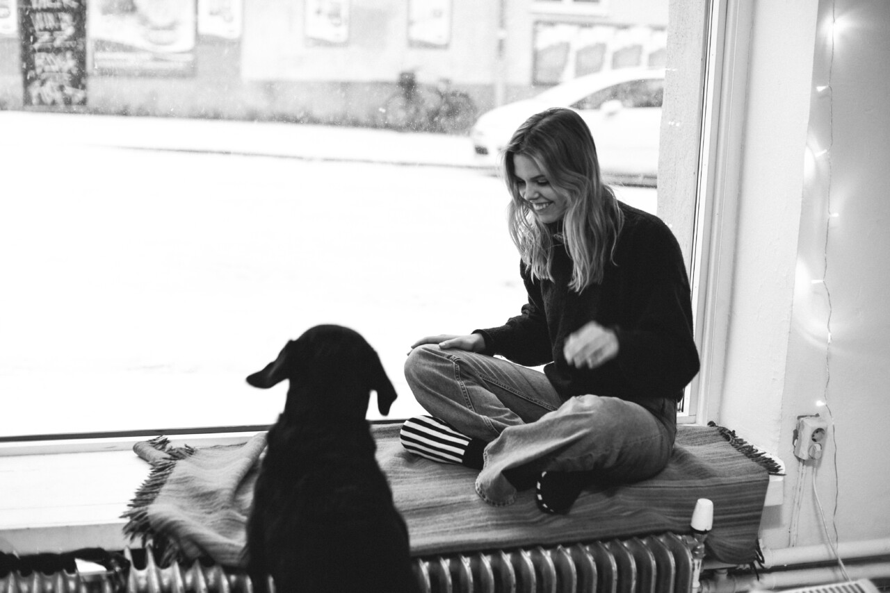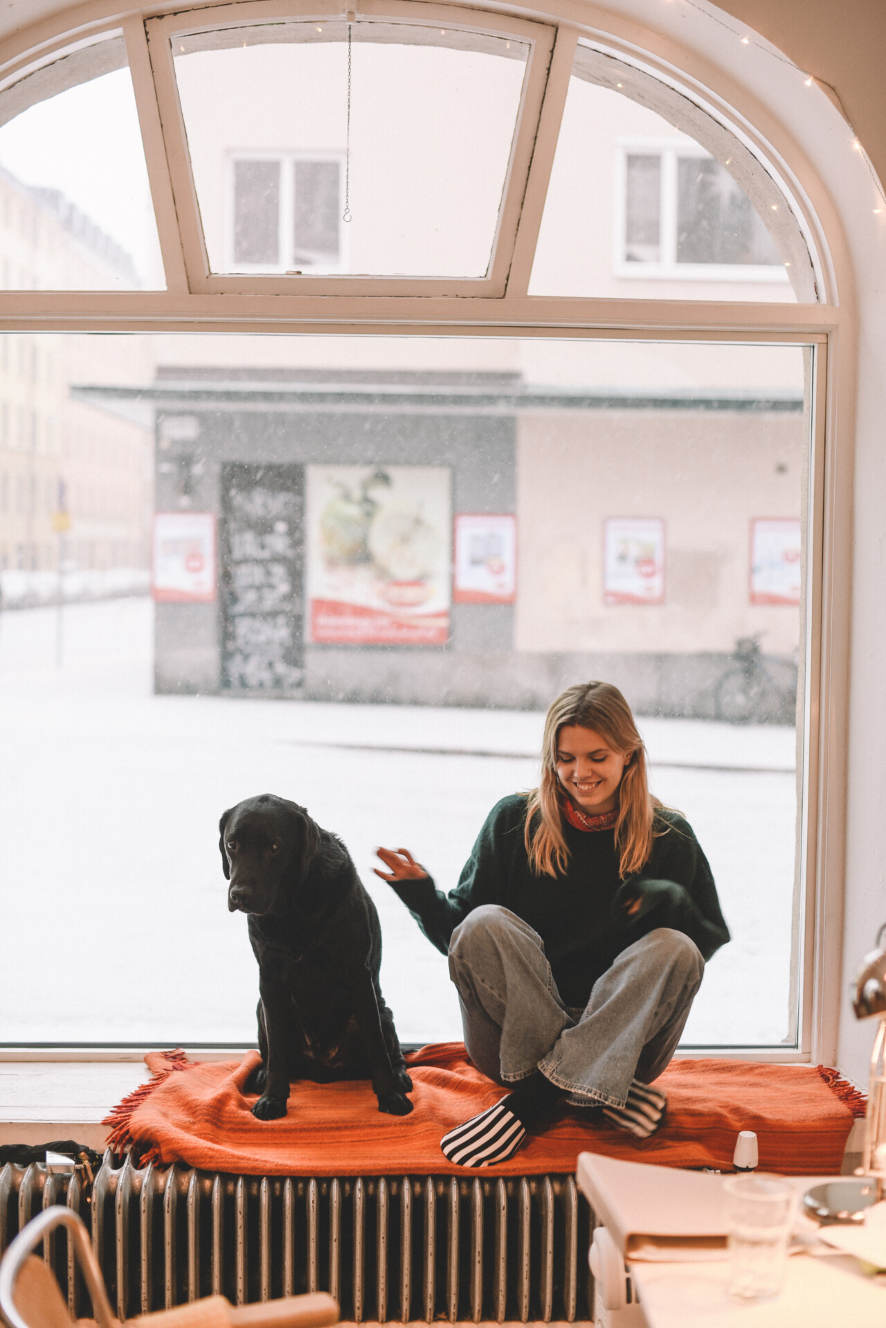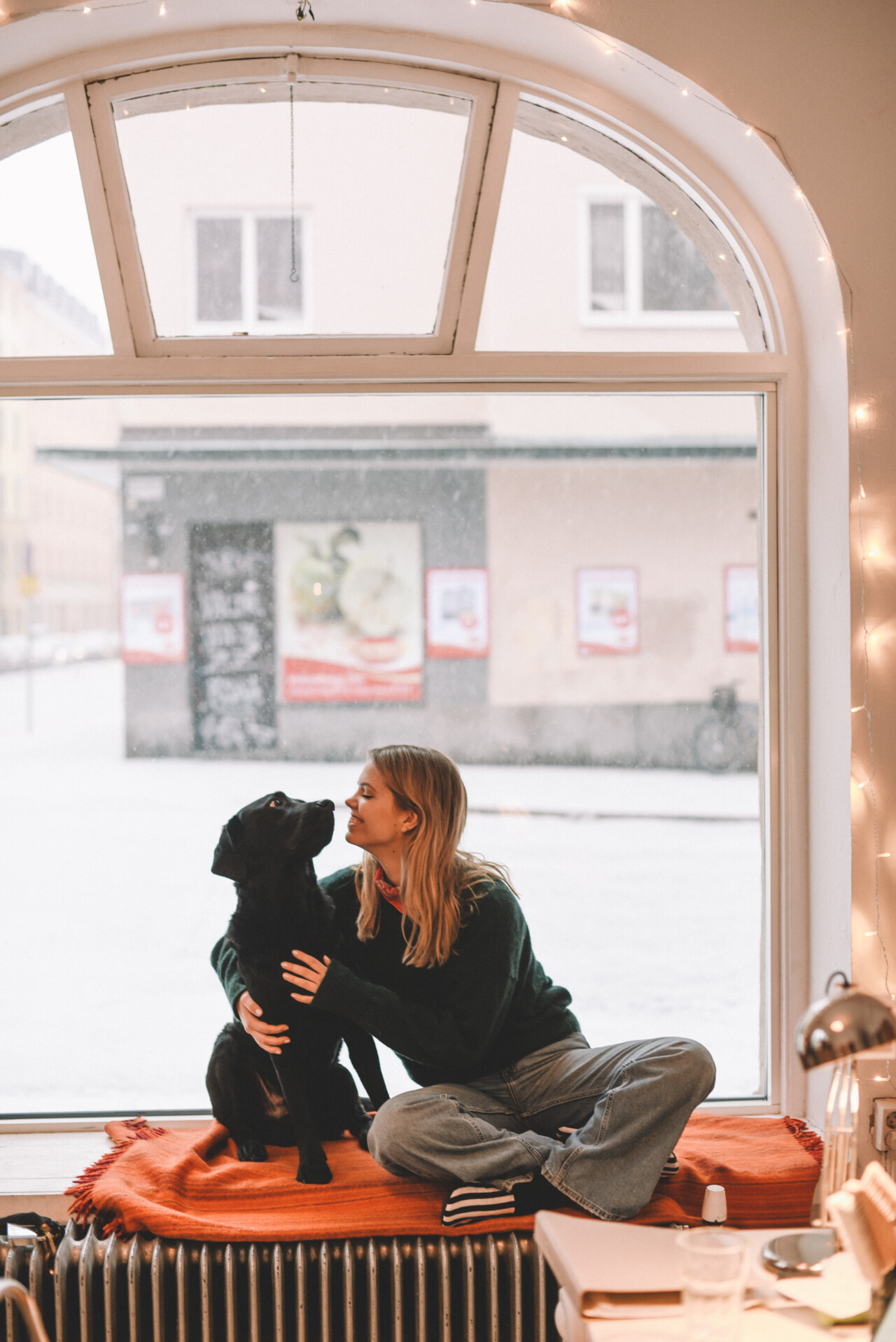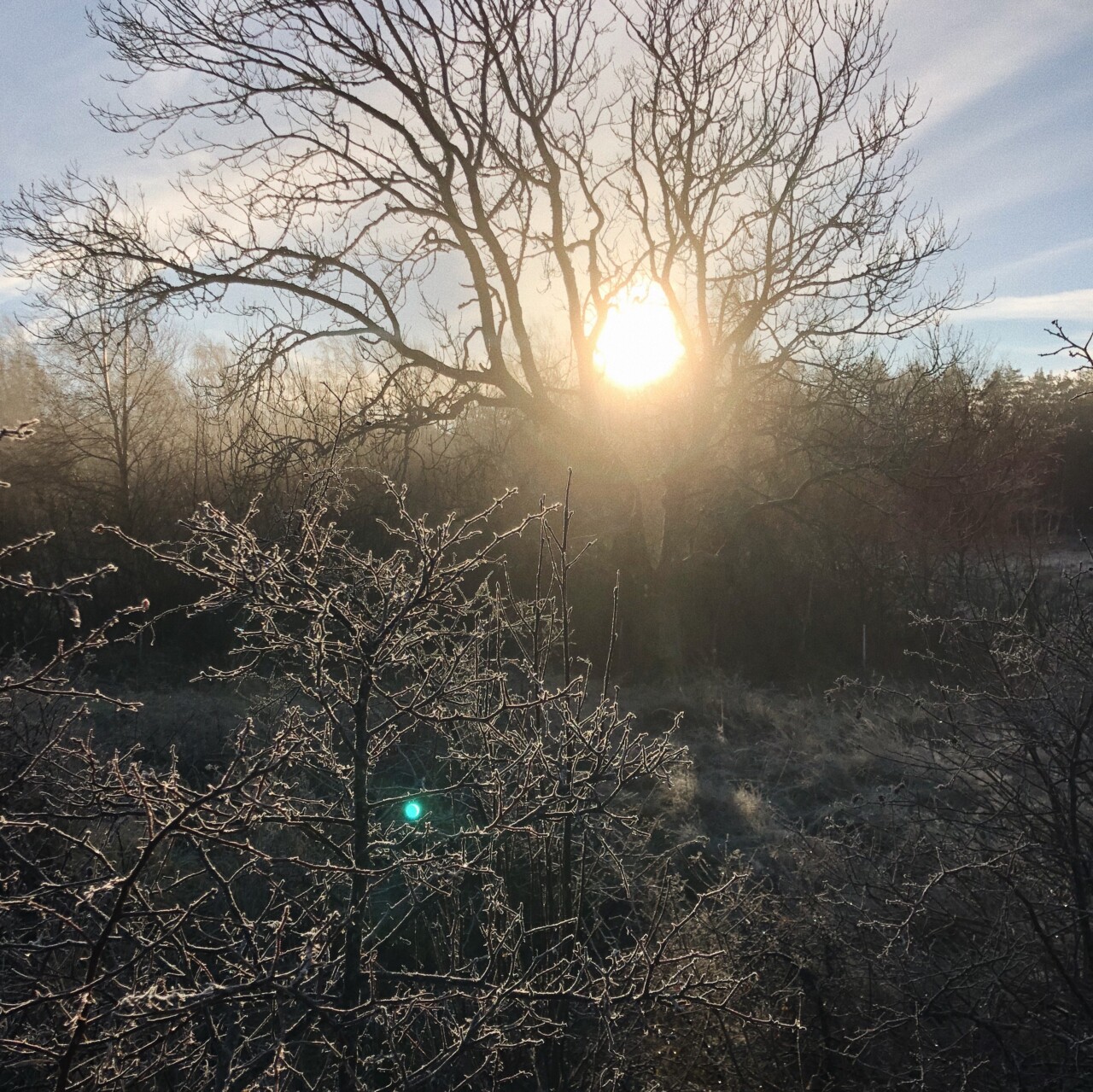 Morgonen därpå var det dimmigt. Vi tog en promenad. Sträckte ut tungan efter vattendroppar från våta trädgrenar och letade bra pinnar.