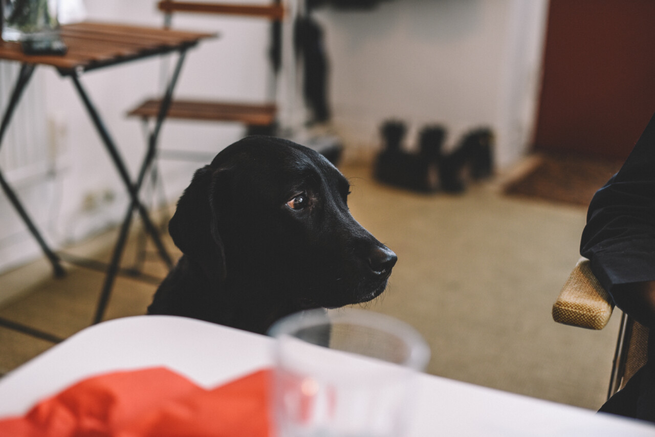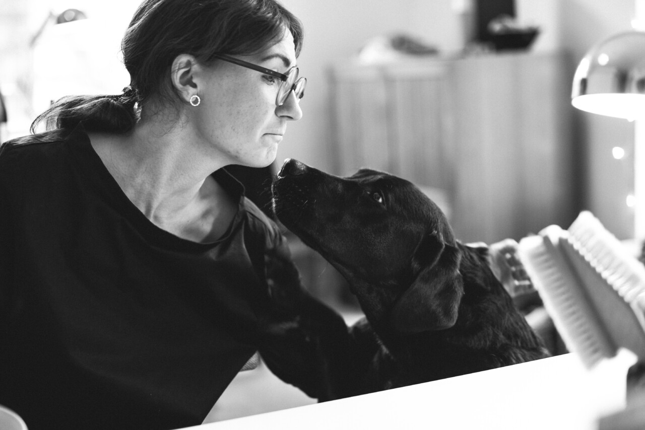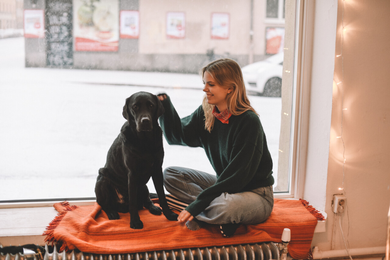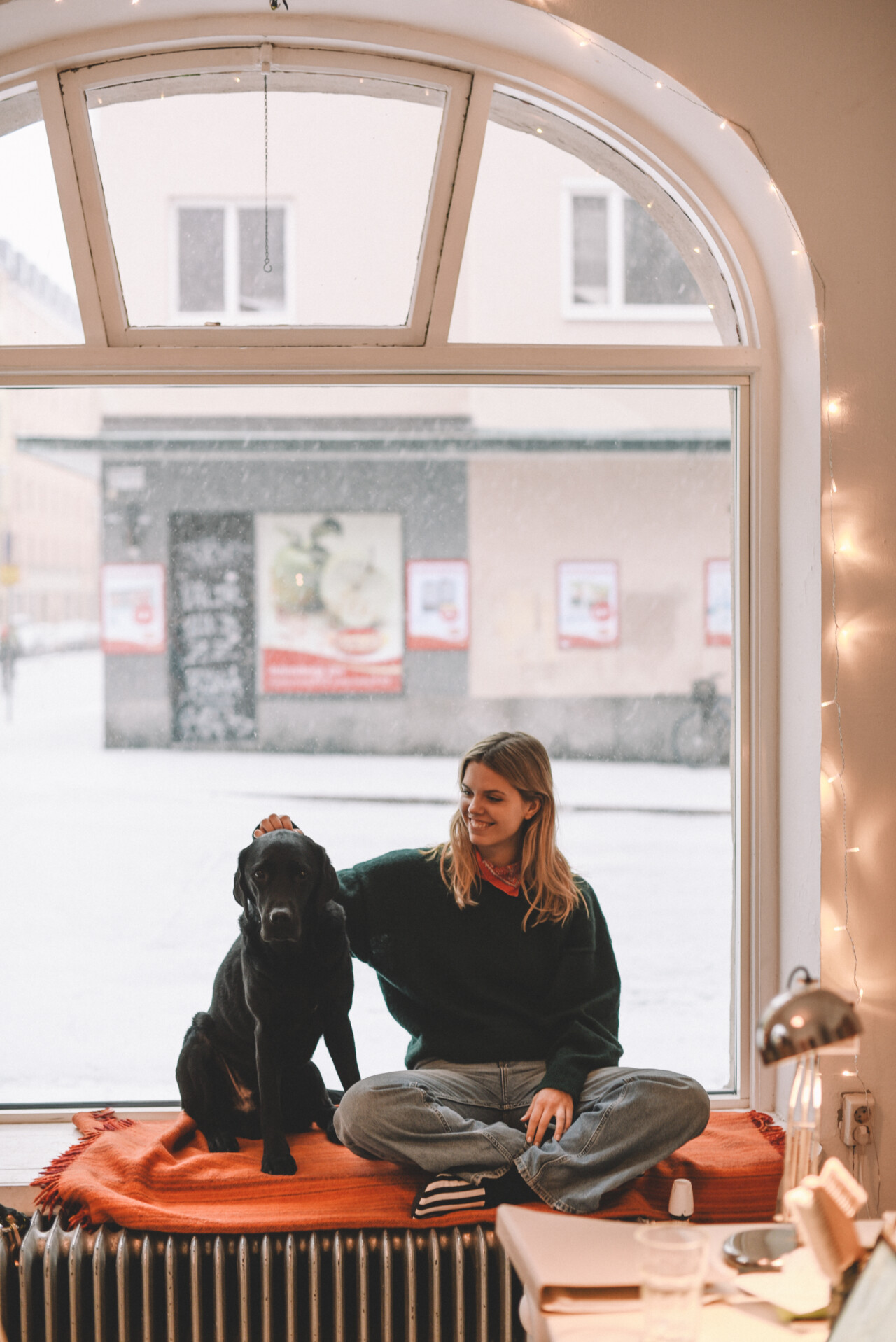 Morgonen därpå var det dimmigt. Vi tog en promenad. Sträckte ut tungan efter vattendroppar från våta trädgrenar och letade bra pinnar.
